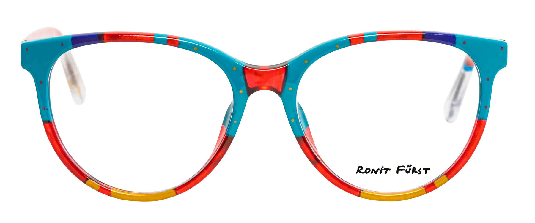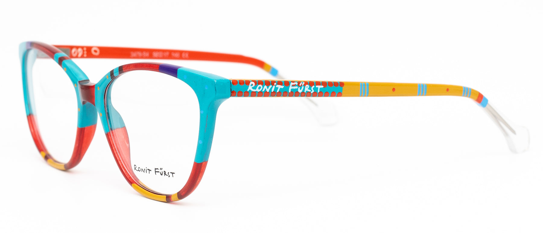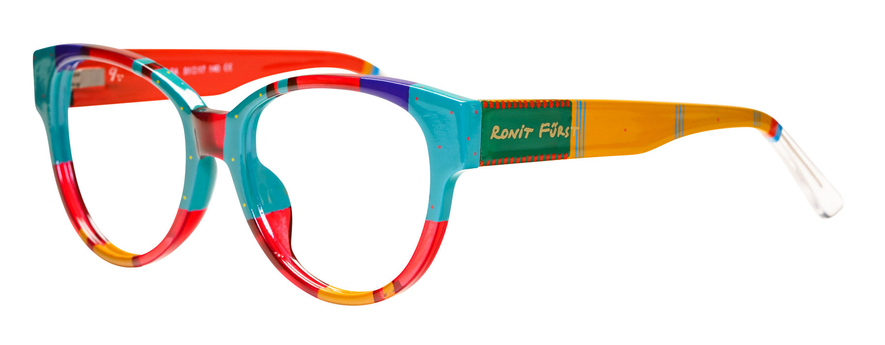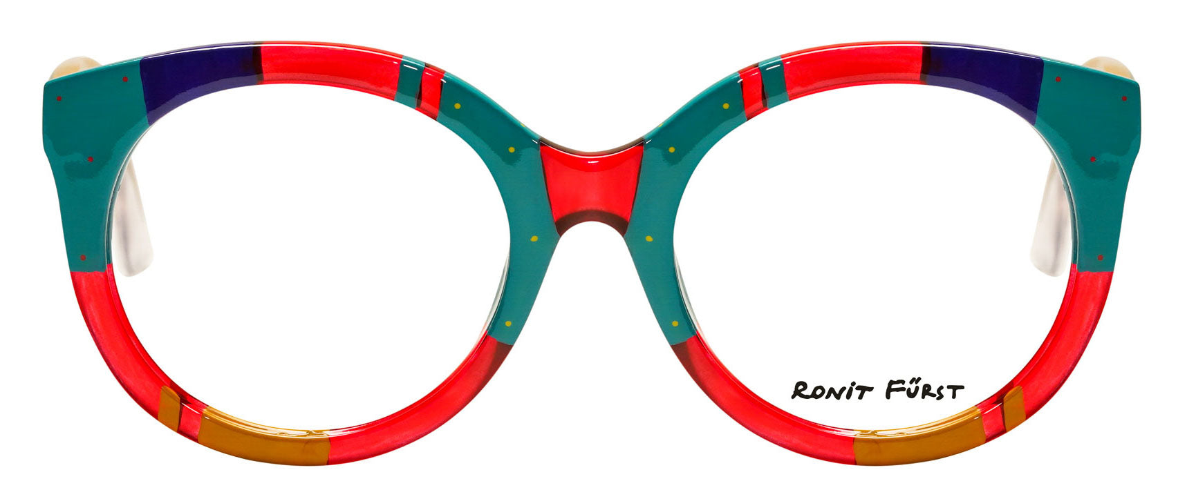 Multicolor Transparent and Opaque front with Opaque micro dot detailing. Temples in Opaque Red and Ochre with Opaque Turquoise stripe detailing.