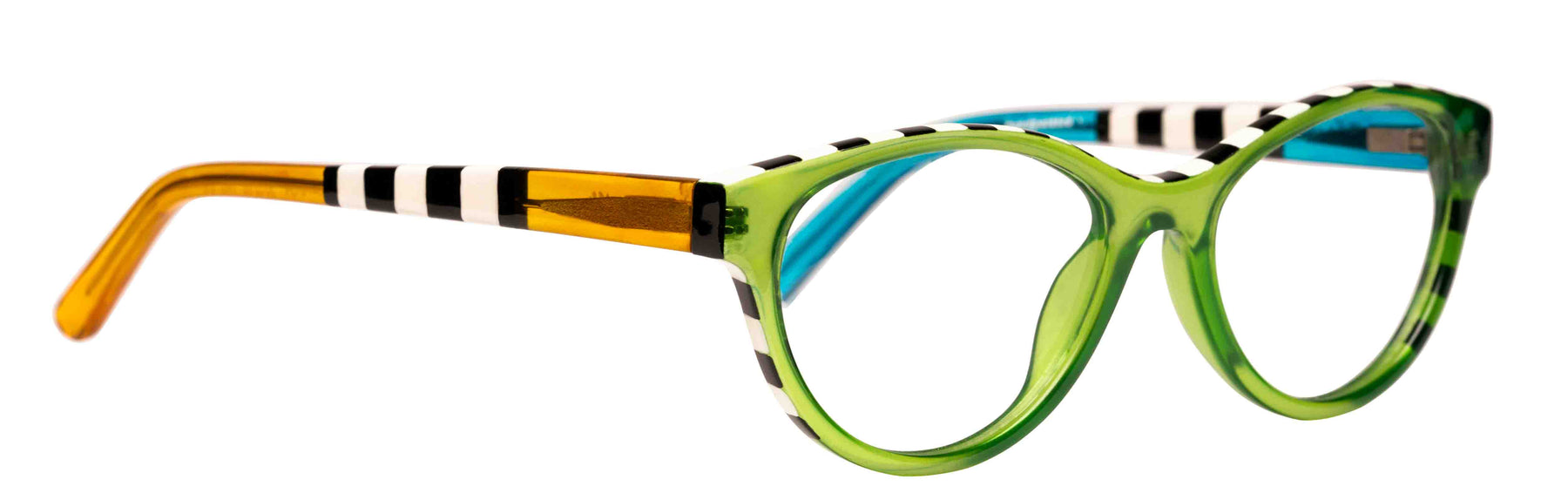 Vintage chic crafted with modern artistry; these unique eyeglasses feature a rounded cat-eye design with a subtle angle. Complements many face shapes, and creates a cheekbone-lifting effect.