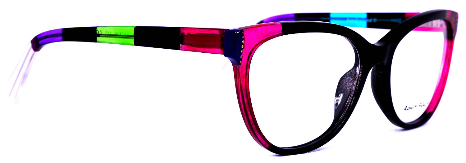 Iconic glam inspired by technicolor; Bring your inner star to life with this designer cat-eye frame. The dramatic angle complements many face shapes, and creates a cheekbone-lifting effect.