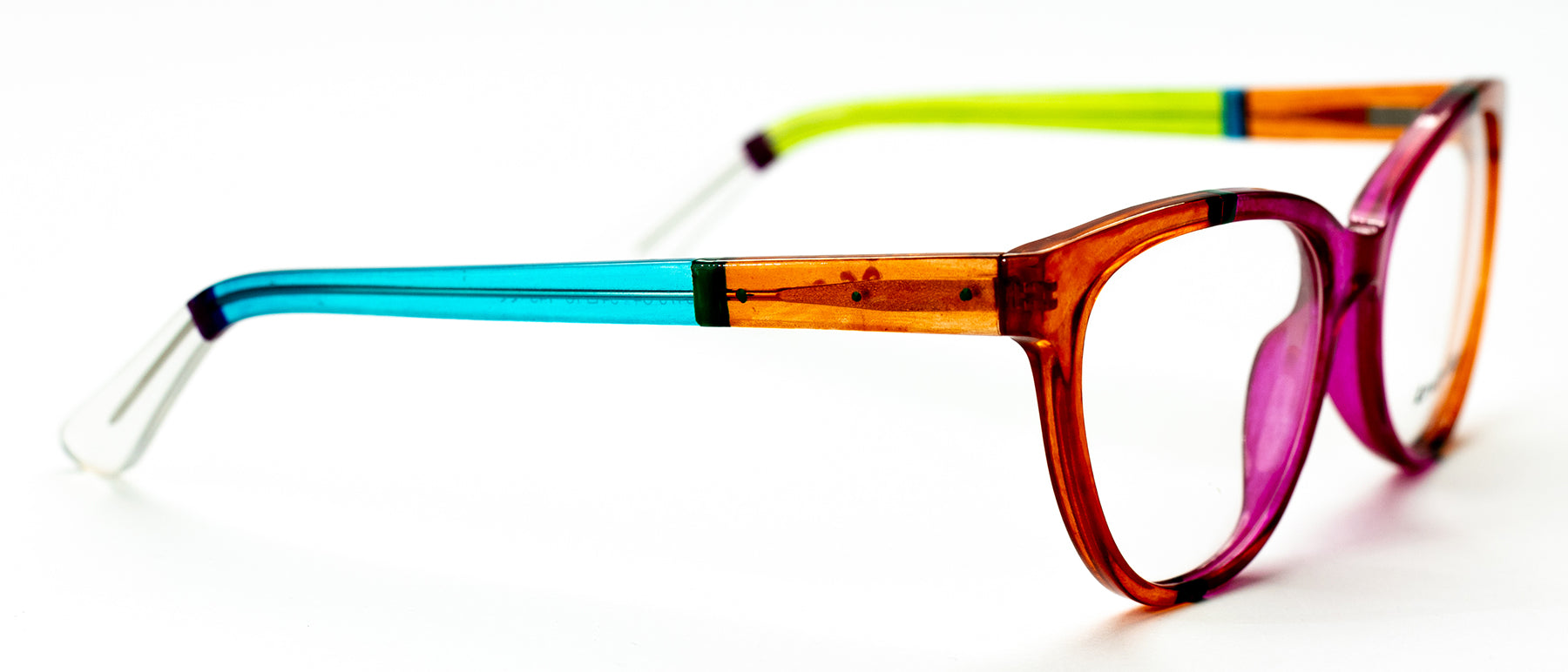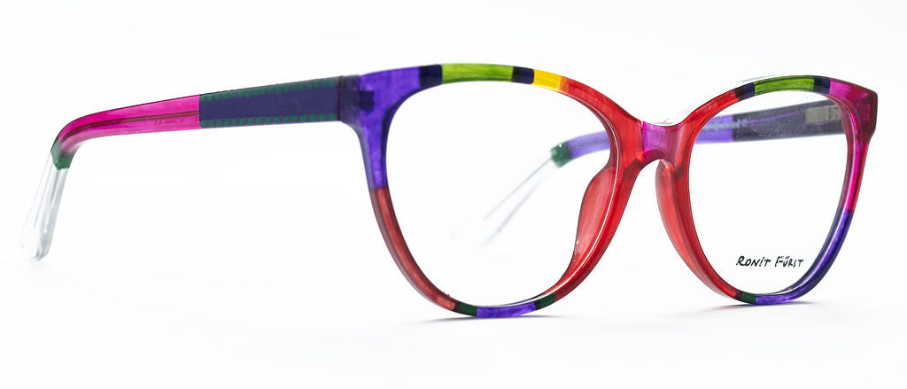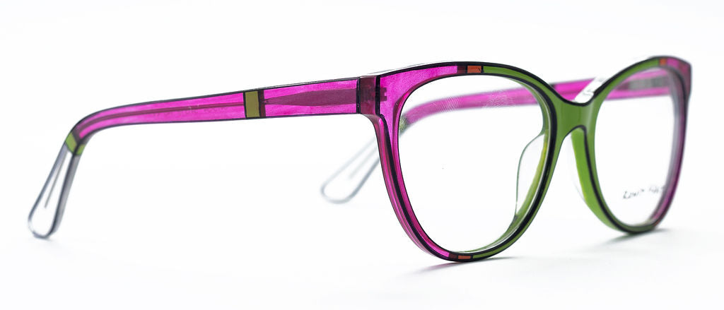 Iconic glam inspired by technicolor; Bring your inner star to life with this designer cat-eye frame. The dramatic angle complements many face shapes, and creates a cheekbone-lifting effect.