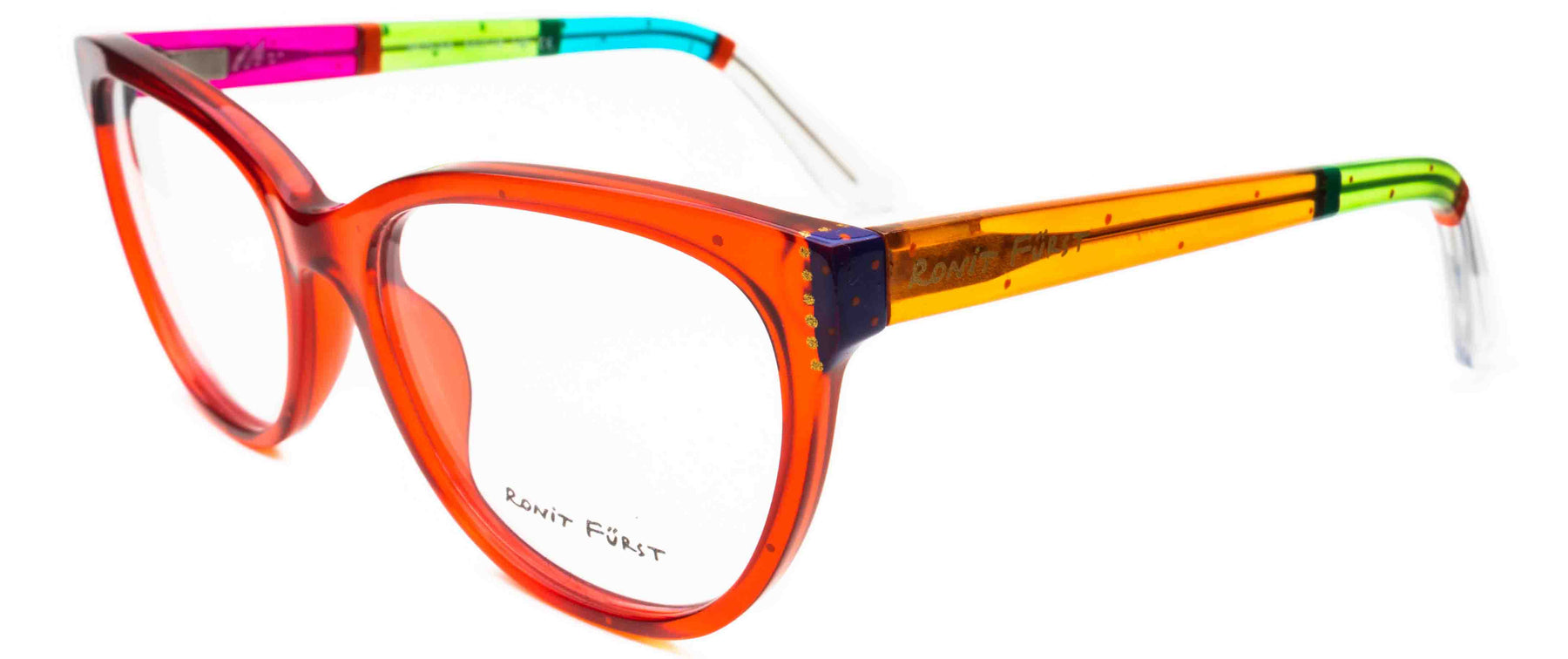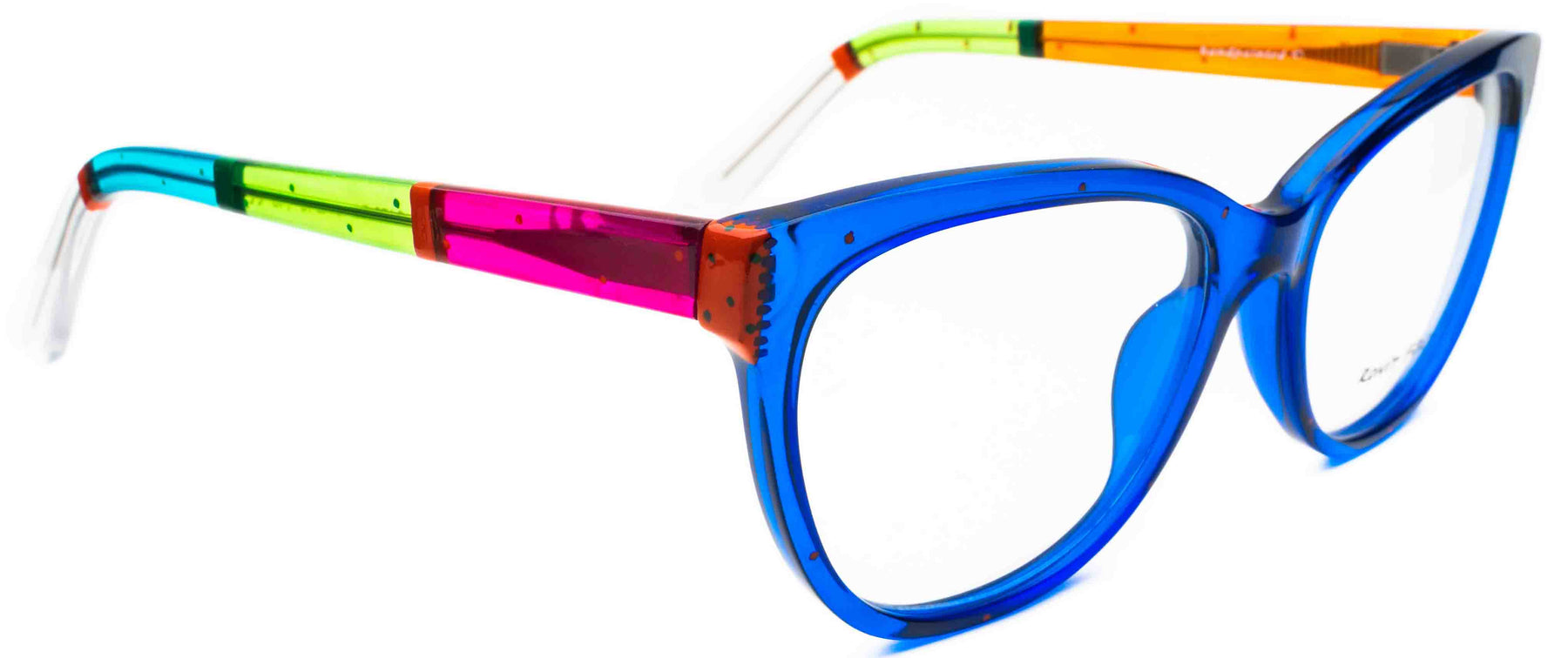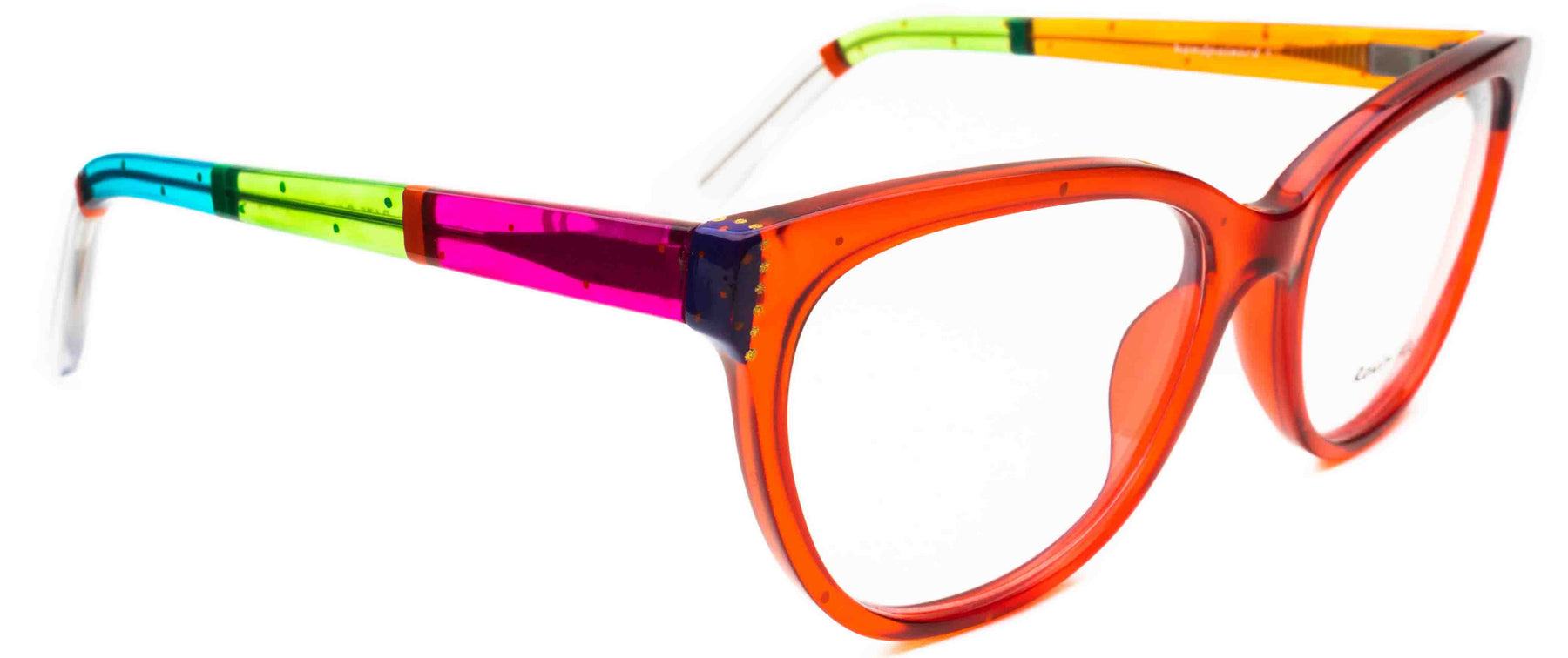 Iconic glam inspired by technicolor; Bring your inner star to life with this designer cat-eye frame. The dramatic angle complements many face shapes, and creates a cheekbone-lifting effect.