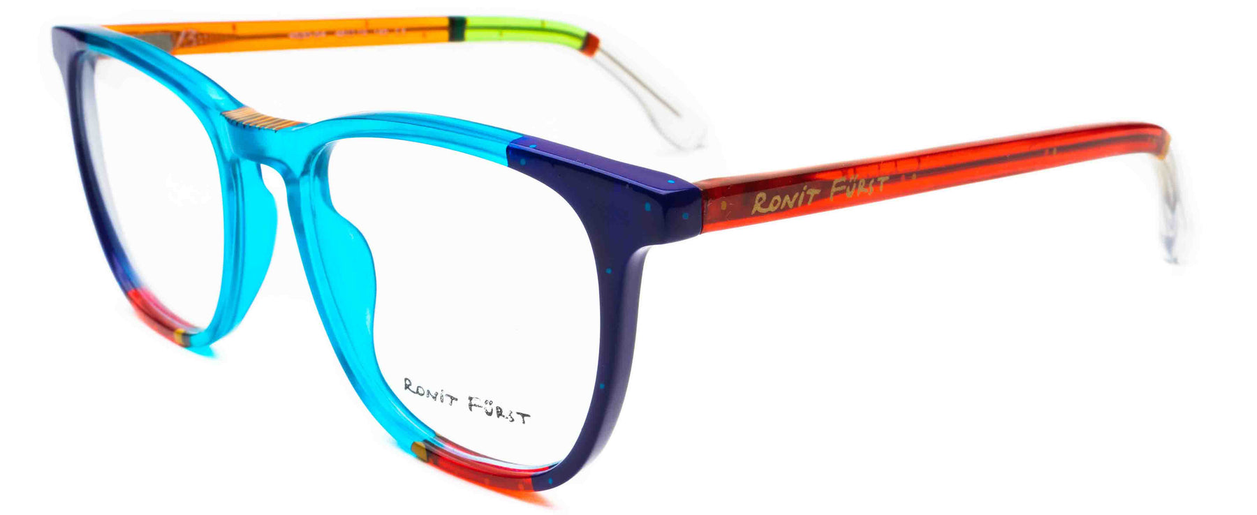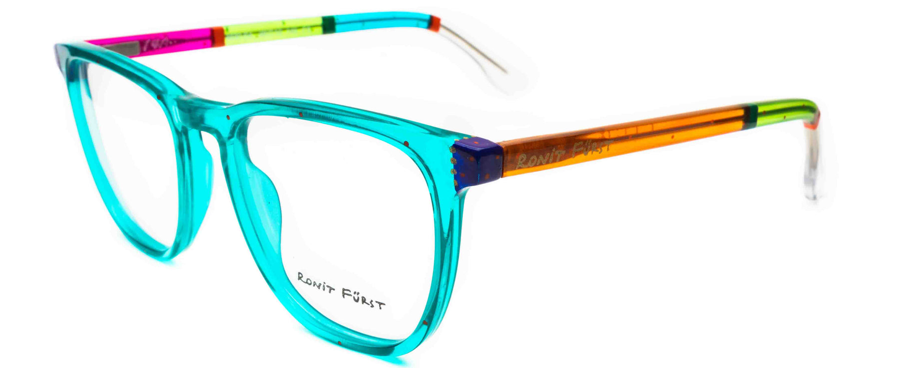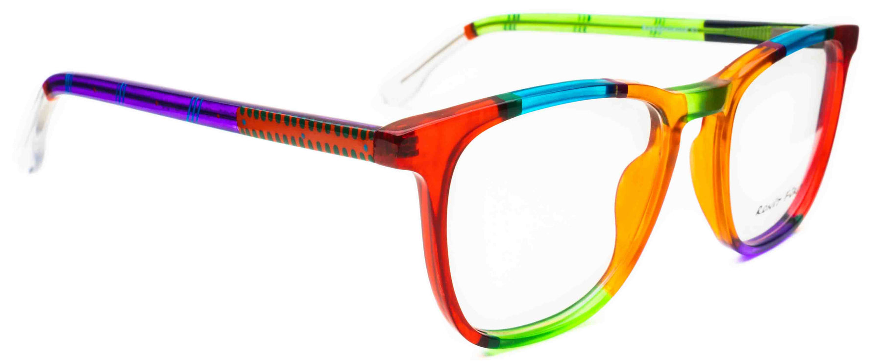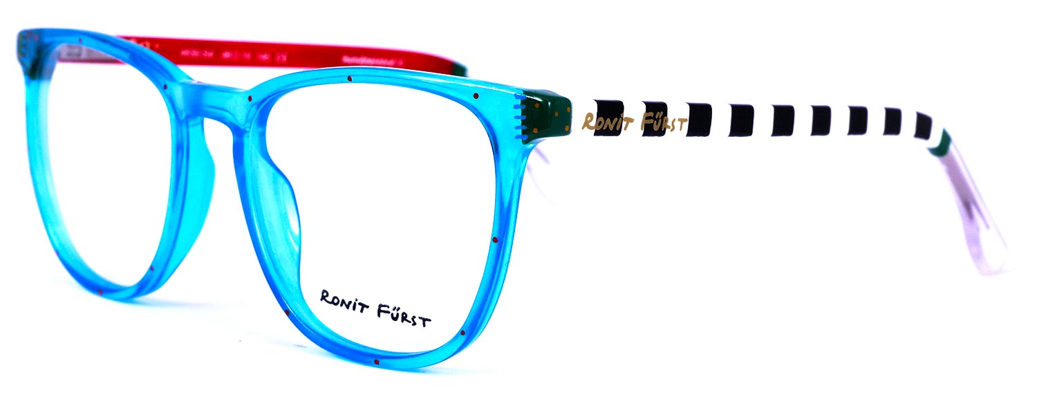 Traditional frame with unconventional designs; The square frame presents bold rimmed upper edges and a rounded angle on the bottom. The keyhole bridge element prevents direct contact with the top of the nose, thus improving the frame’s comfort.