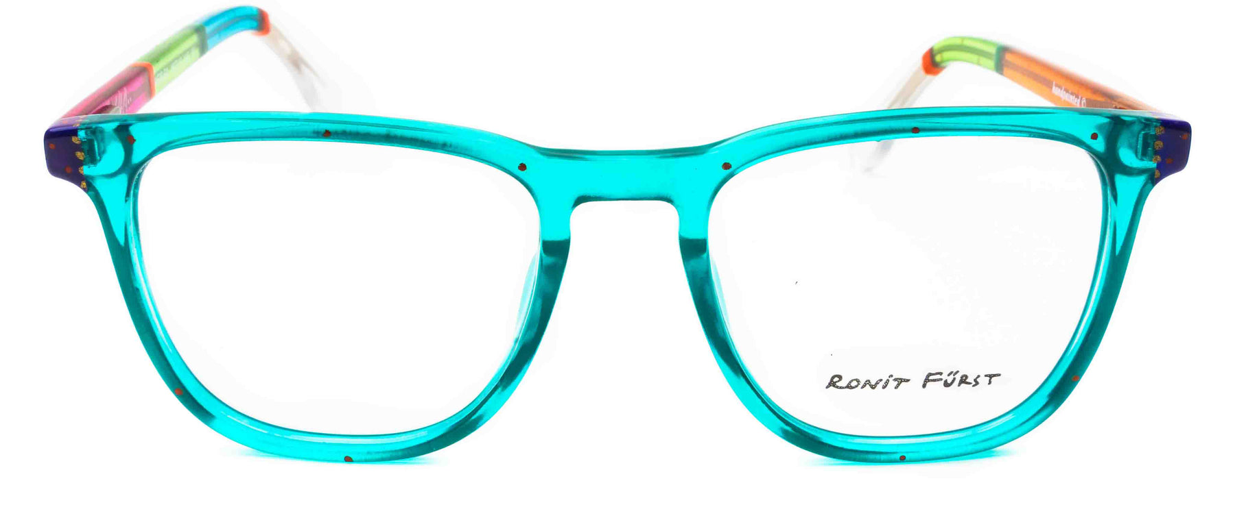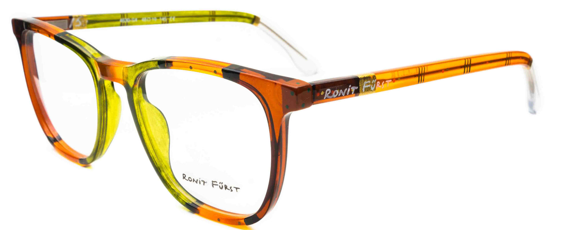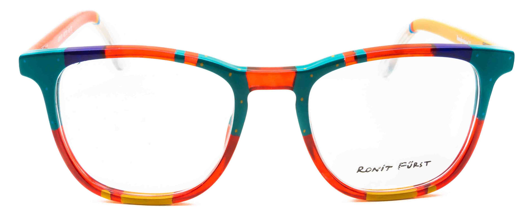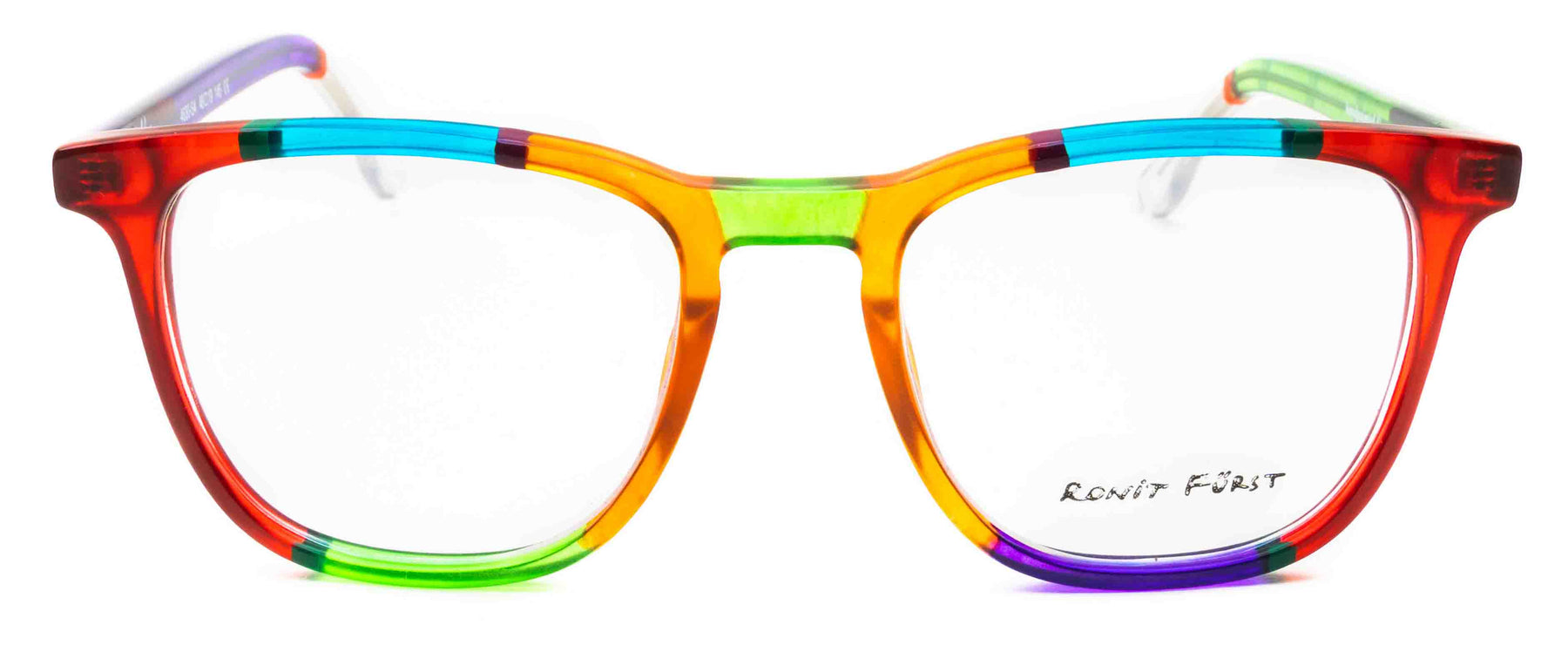 Traditional frame with unconventional designs; The square frame presents bold rimmed upper edges and a rounded angle on the bottom. The keyhole bridge element prevents direct contact with the top of the nose, thus improving the frame’s comfort.