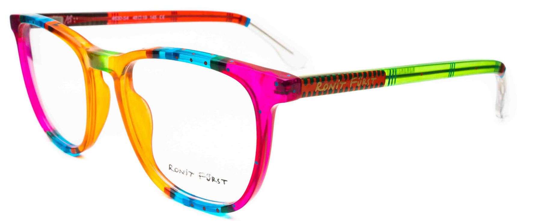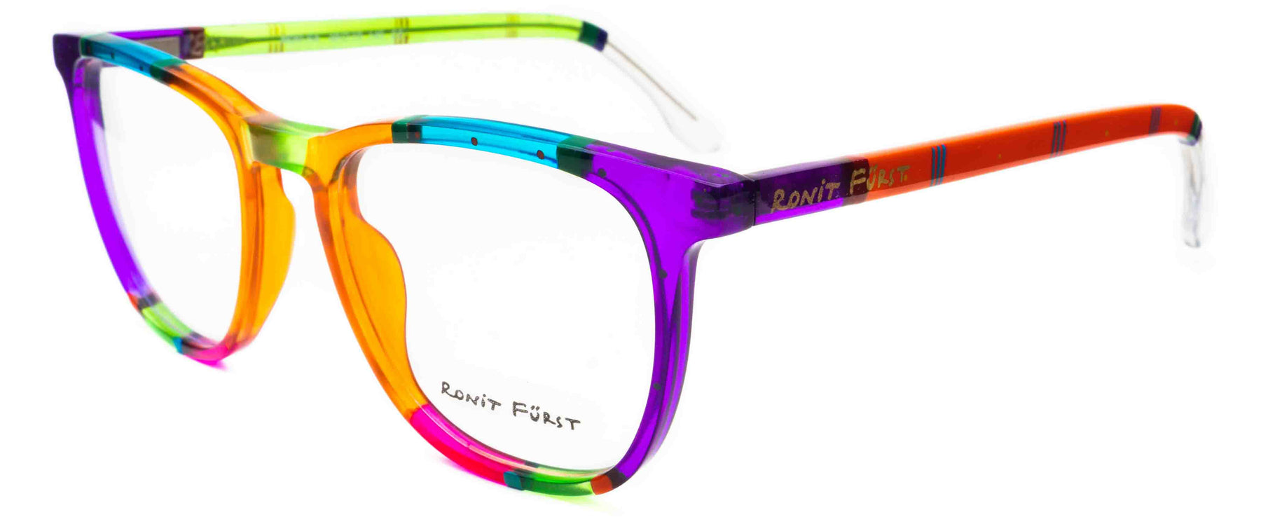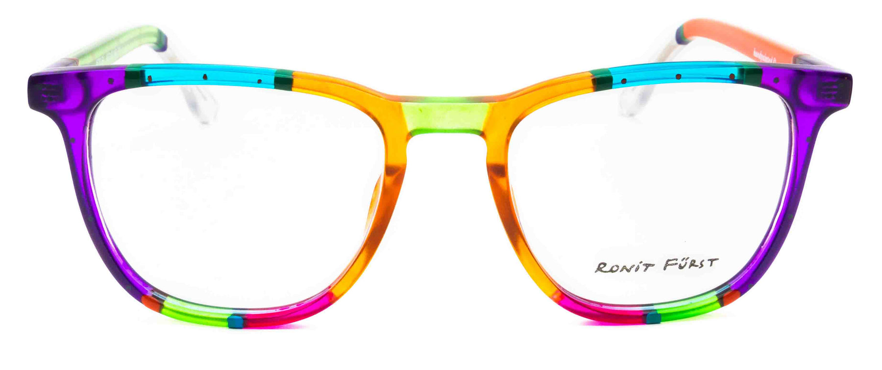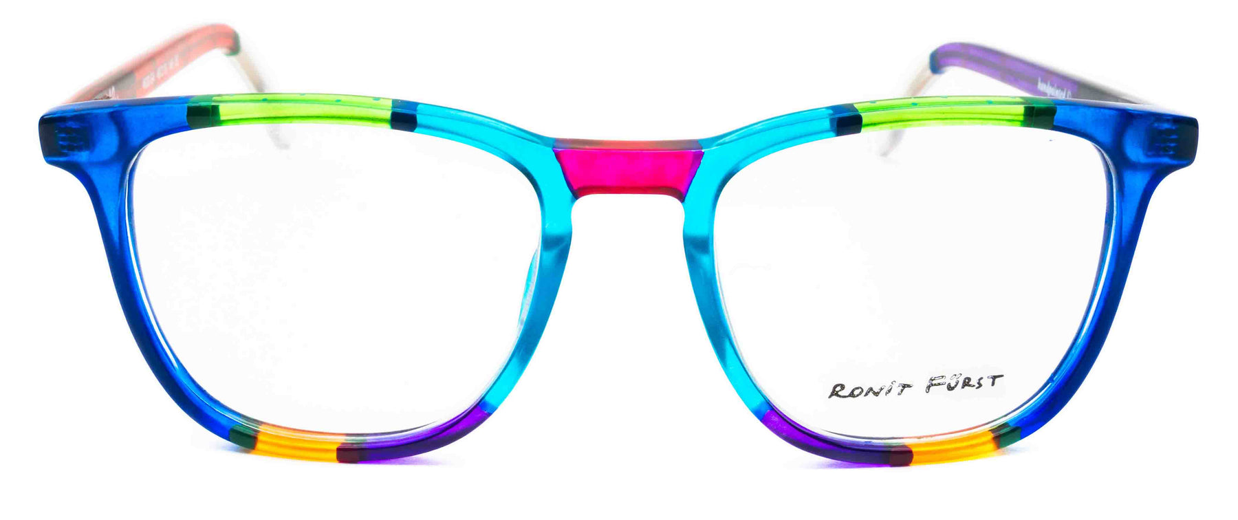 Traditional frame with unconventional designs; The square frame presents bold rimmed upper edges and a rounded angle on the bottom. The keyhole bridge element prevents direct contact with the top of the nose, thus improving the frame’s comfort.