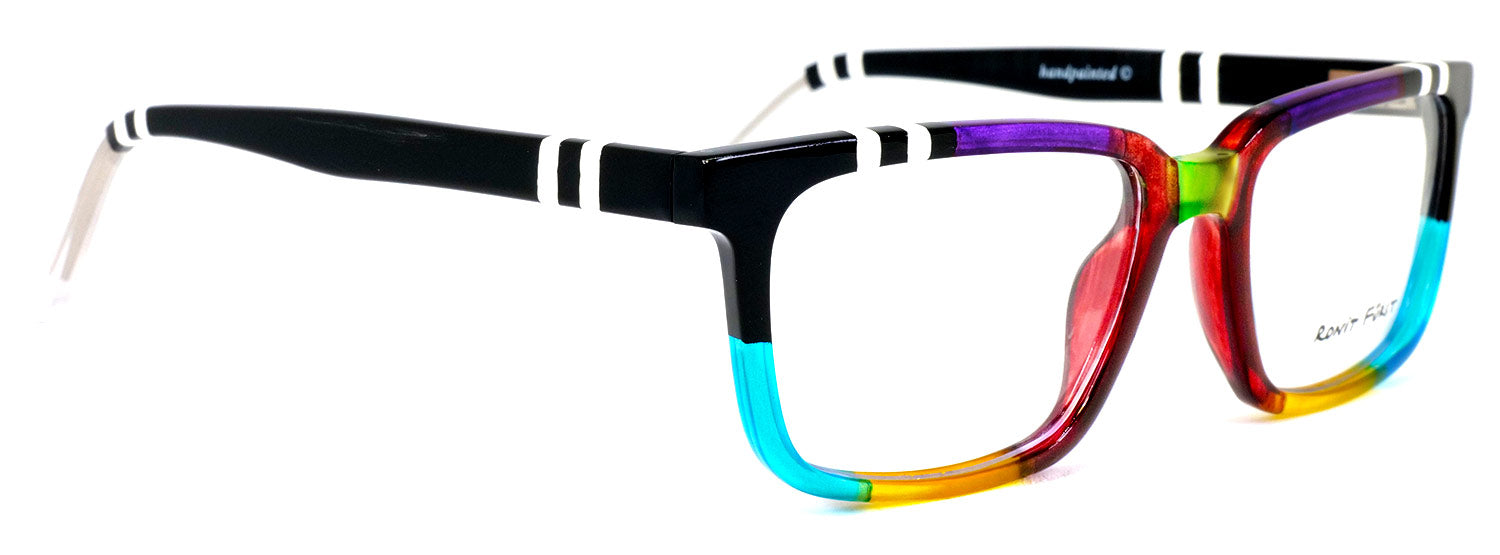 A sleek shape with bold colors; Trendy glasses that draw inspiration from the 90’s geek-chic, but add a contemporary interpretation through hand-painted exclusive designs.