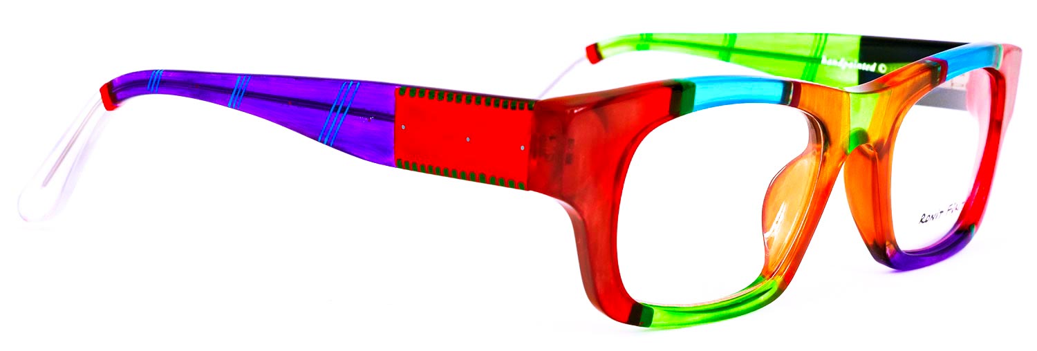The acetate frame, beyond being light and versatile, is also the ideal material for intricate patterns. The thickness of the rims makes it possible to go into further detail while hand-painting the design, thus creating an exceptionally impressive fashion eyewear piece.