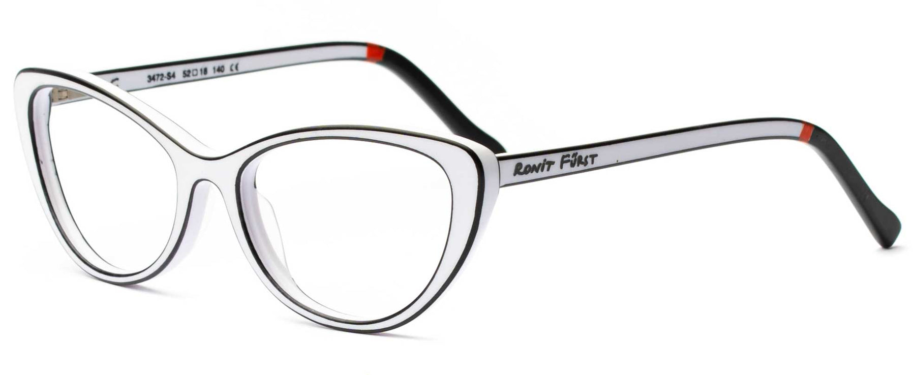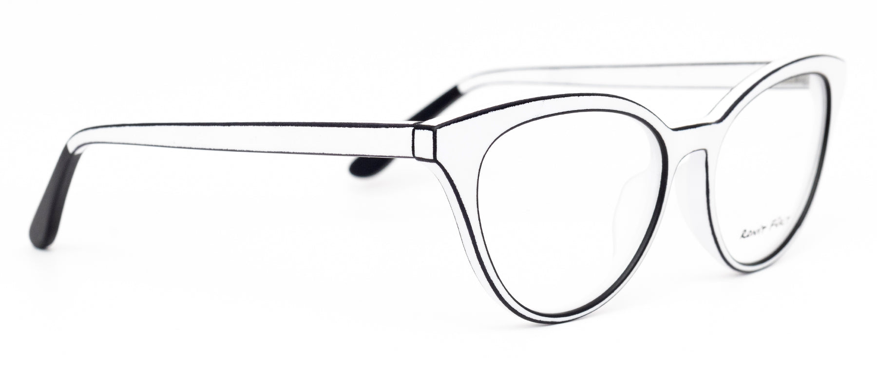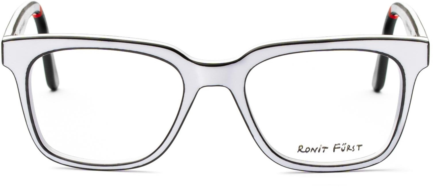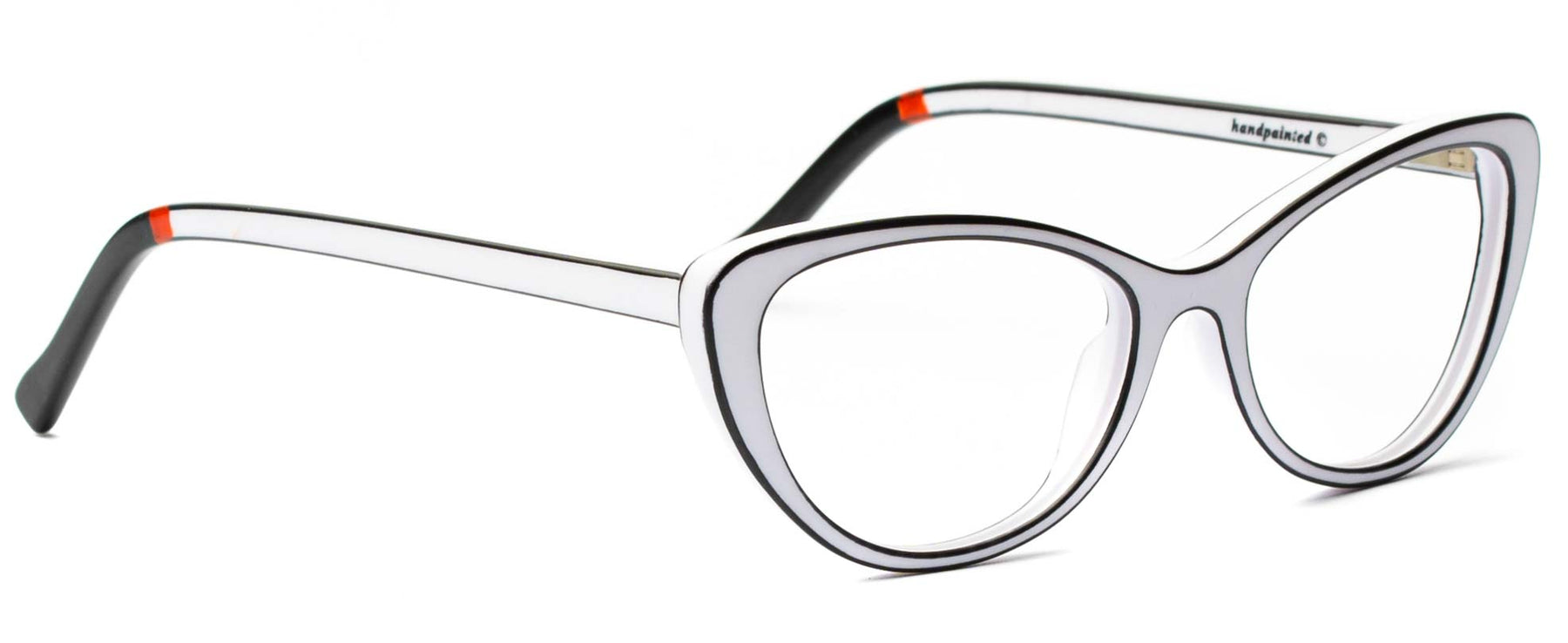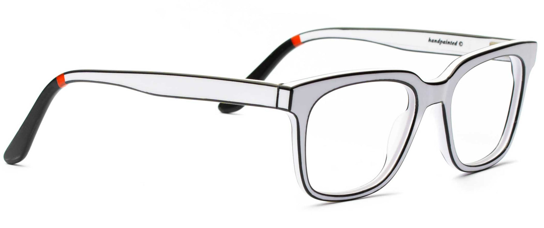 Opaque White frame with Black Contour. Temples with Opaque Black tips and Opaque Red banding. All over Matt finish.