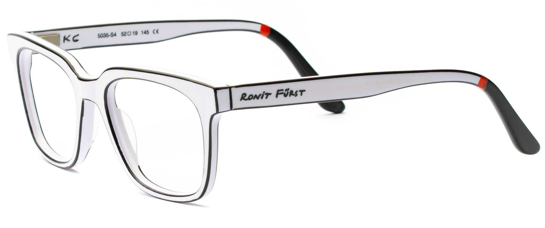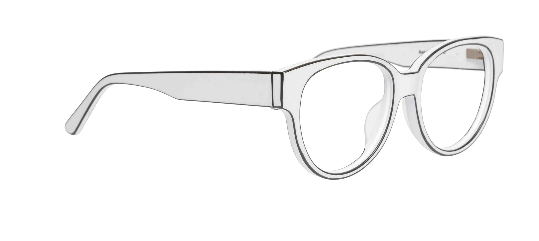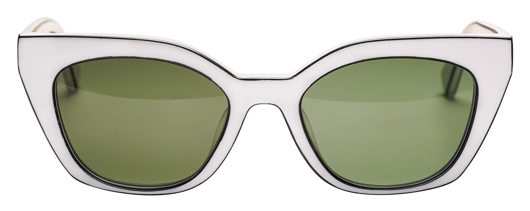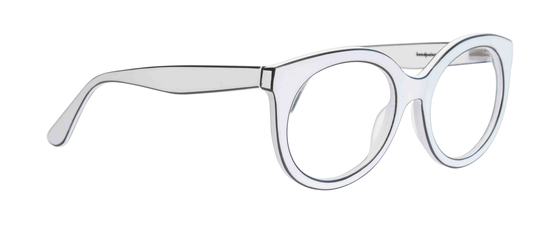 Opaque White frame with Black Contour. Temples with Opaque Black tips and Opaque Red banding. All over Matt finish.