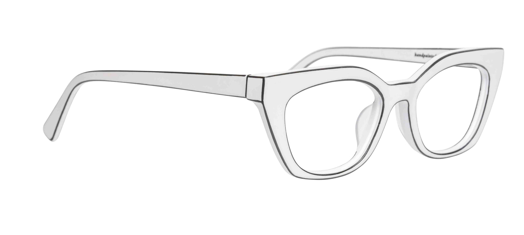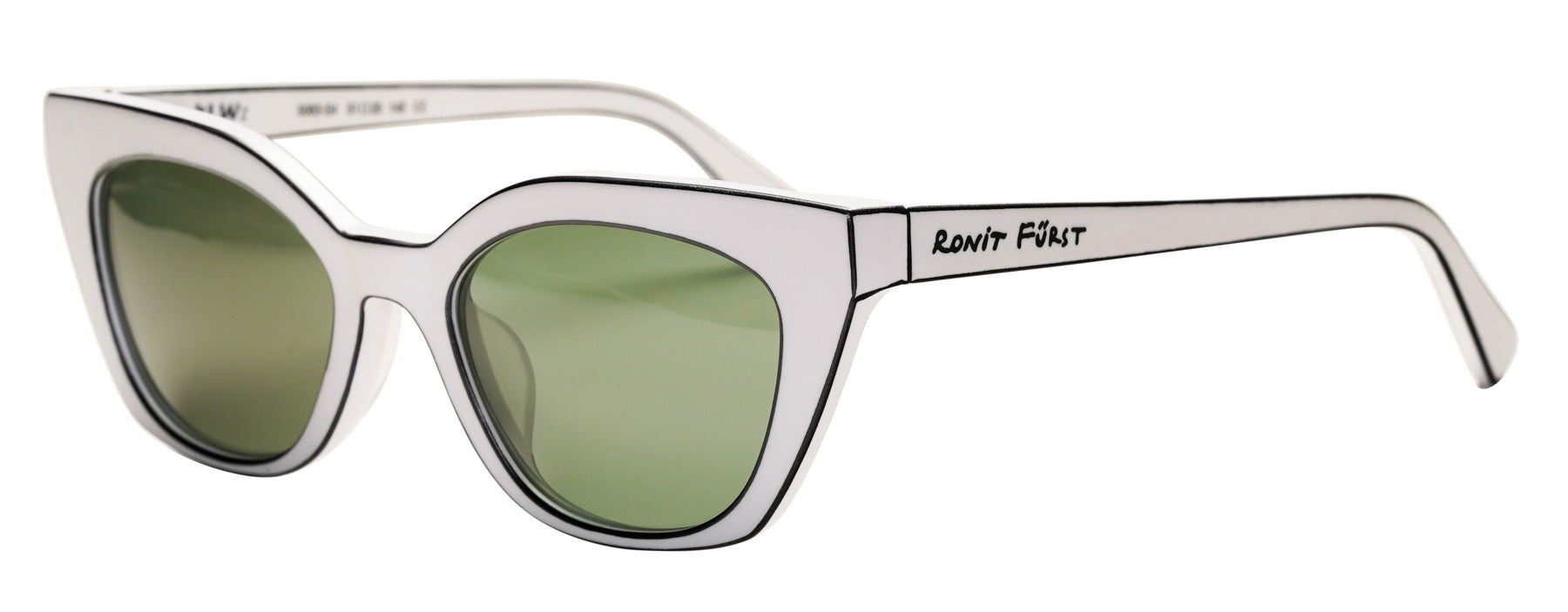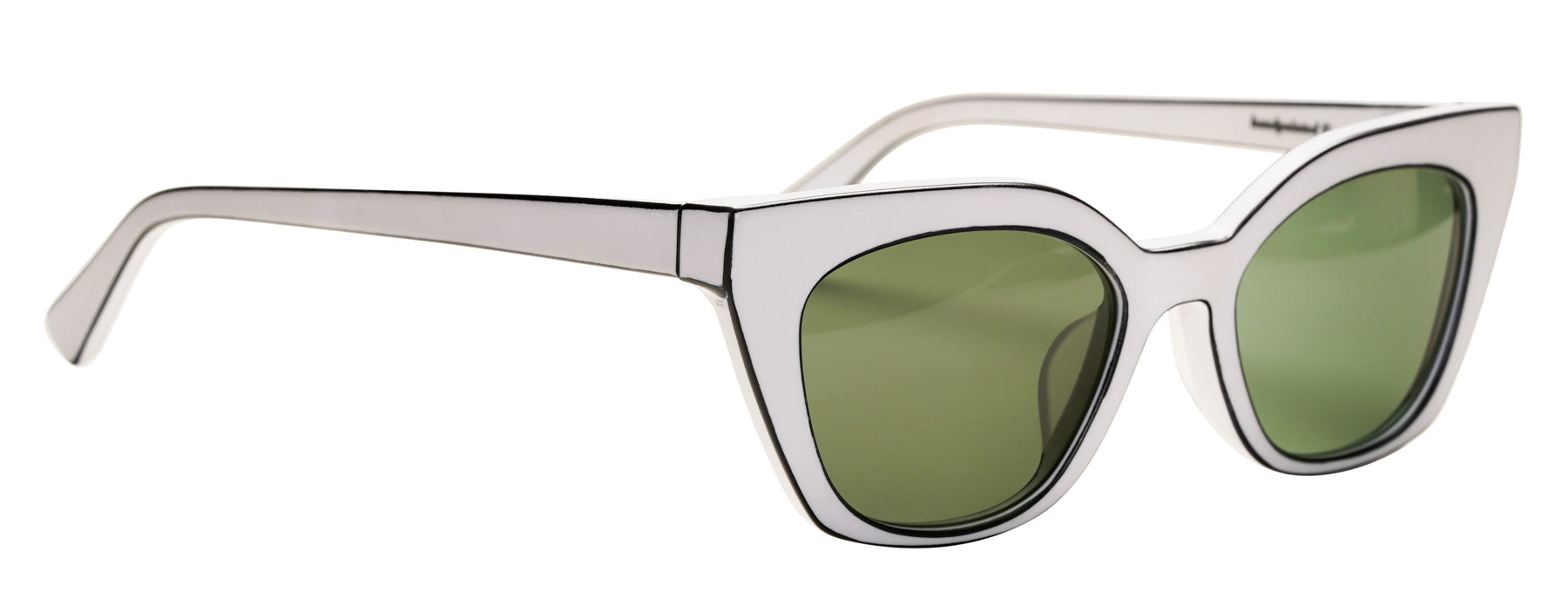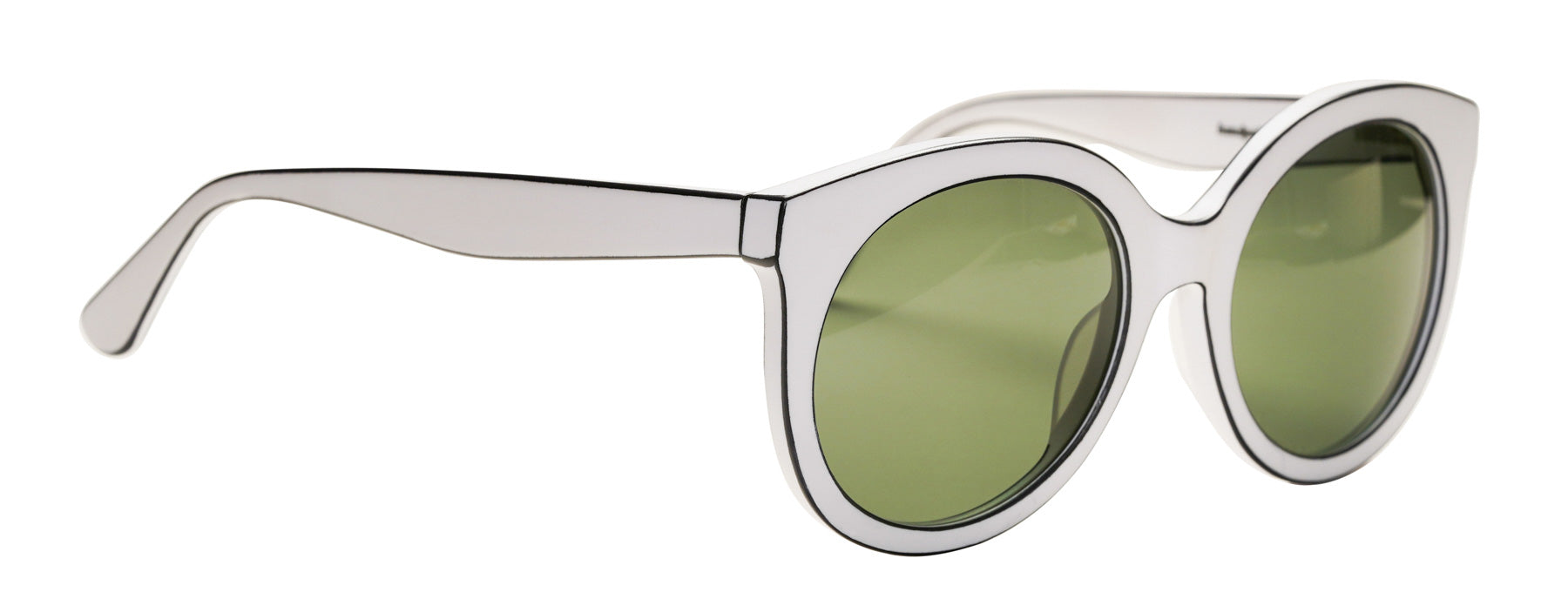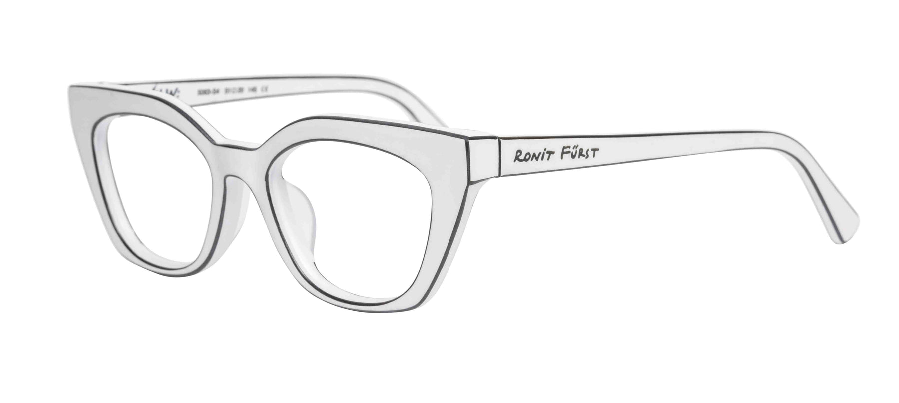 Opaque White frame with Black Contour. Temples with Opaque Black tips and Opaque Red banding. All over Matt finish.