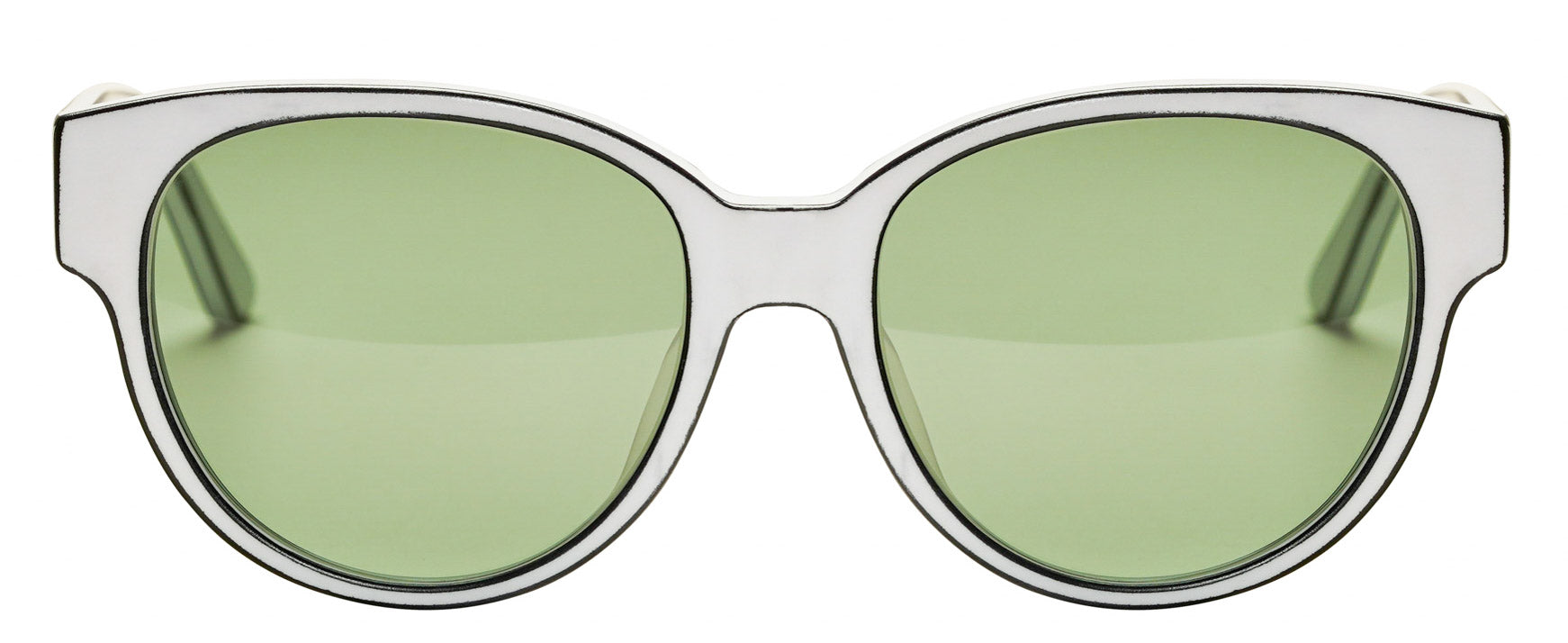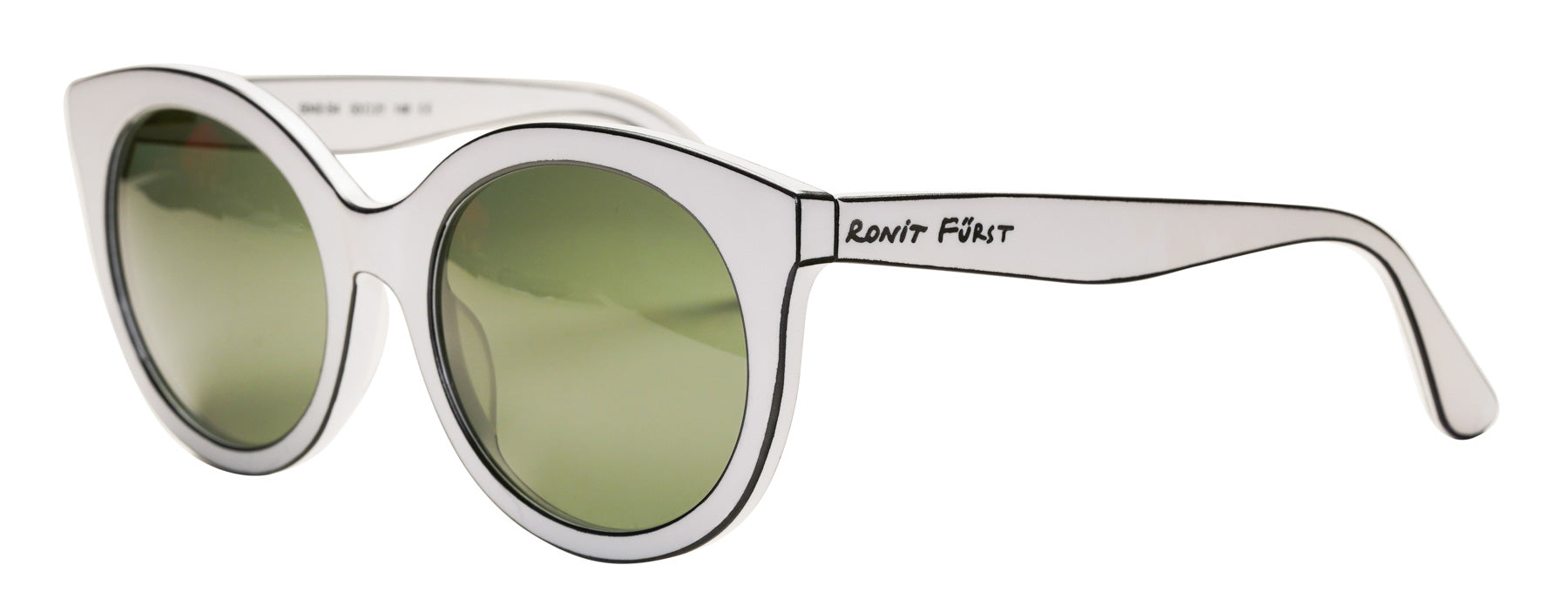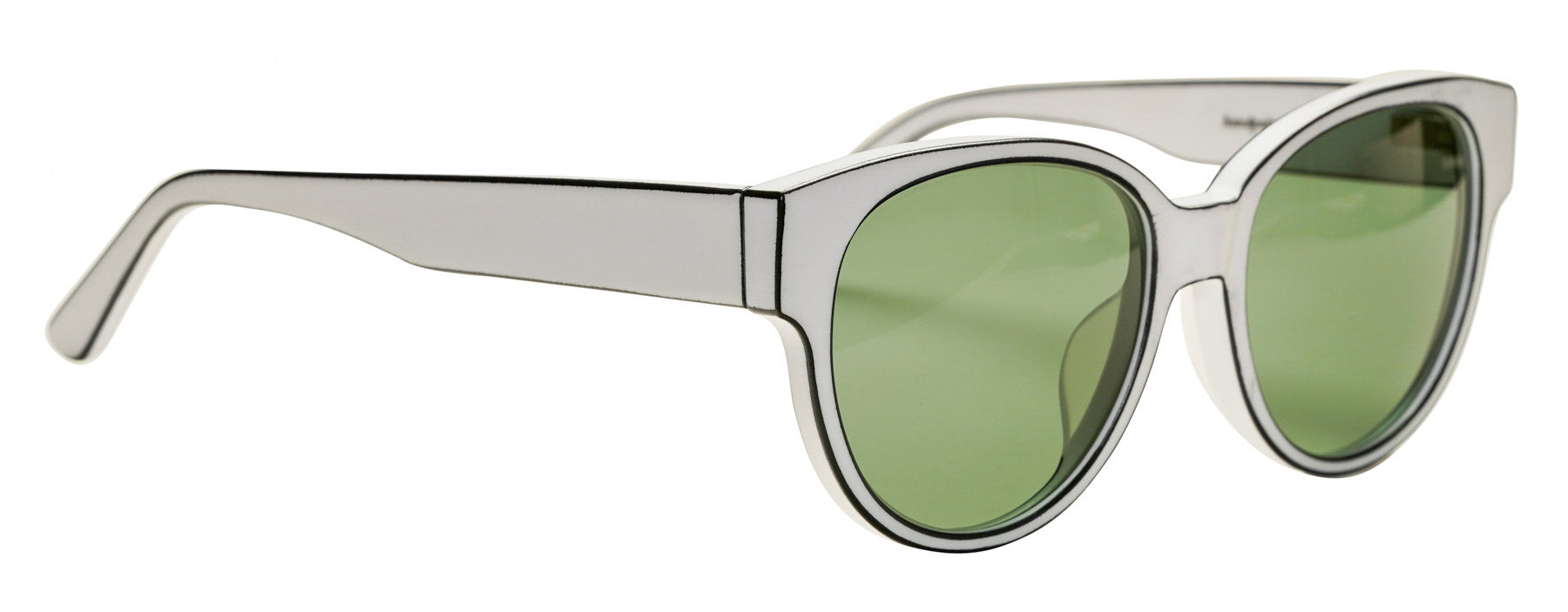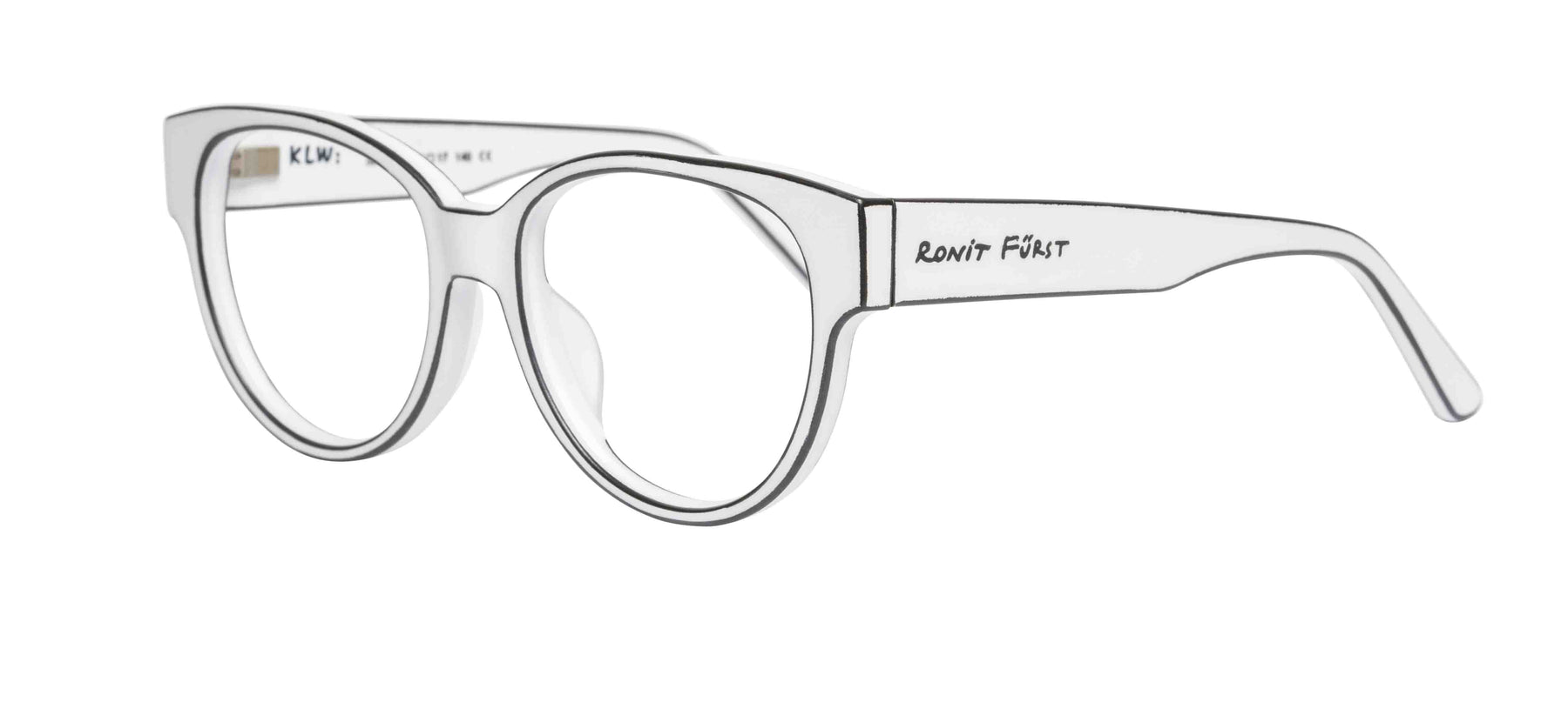 Opaque White frame with Black Contour. Temples with Opaque Black tips and Opaque Red banding. All over Matt finish.