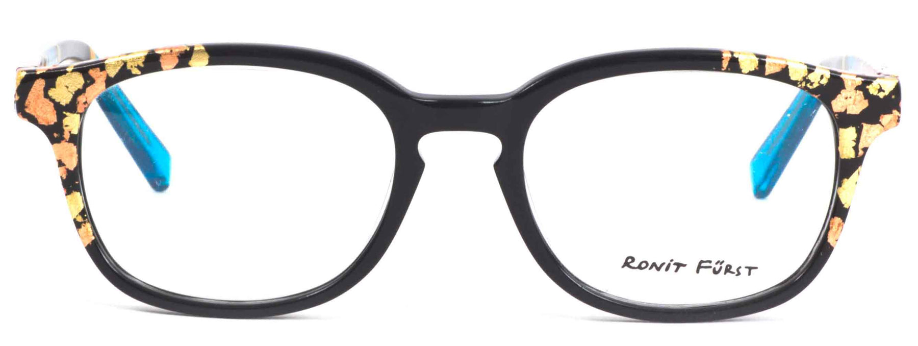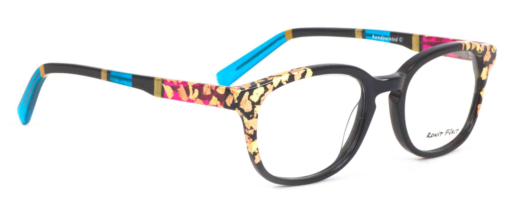 Color Z3, Opaque Black front with Yellow and Rose Gold leaf applique'. Temples in Transparent/Opaque color blocking with Gold leaf applique'.